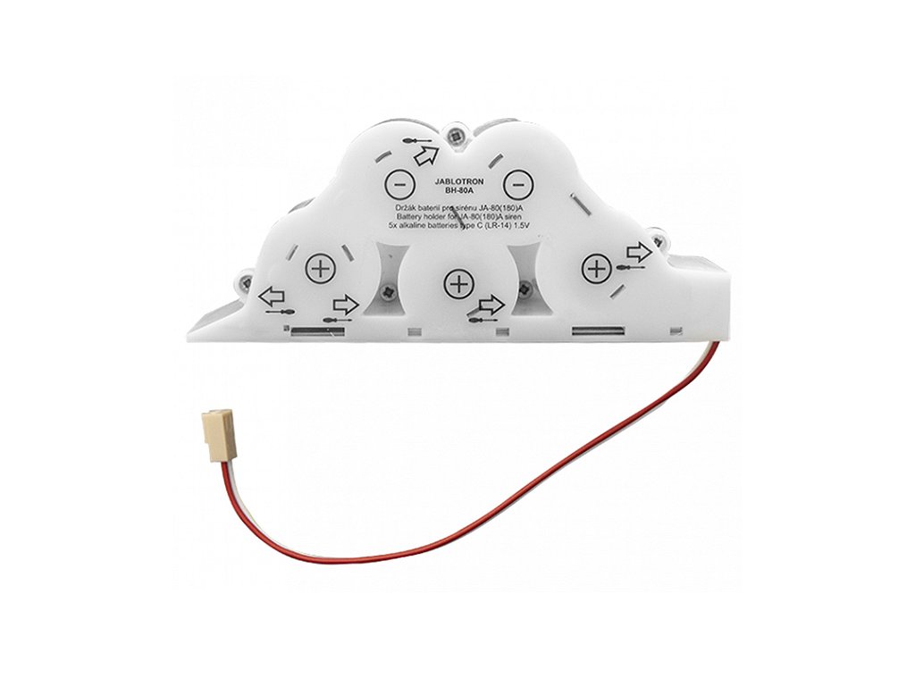 Držák pro 5x alkalických baterií typu - C pro sirénu JA-80 a JA-180. Držák se používá místo baterie BAT-80-SAFT.