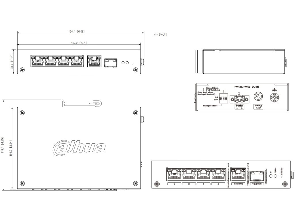 Průmyslový PoE switch, duální napájení, široký teplotní rozsah -30 až 65 °C, Cloud management L2 (DolynkCare), 4 x PoE 10/100 Mbps, 2 x Gb RJ45/SFP uplink, celkový budget je 60 W, IEEE 802.3af; IEEE 802.3at; Hi-PoE. Přepěťové ochrany, kov, police nebo DIN, napájecí zdroj součástí balení.