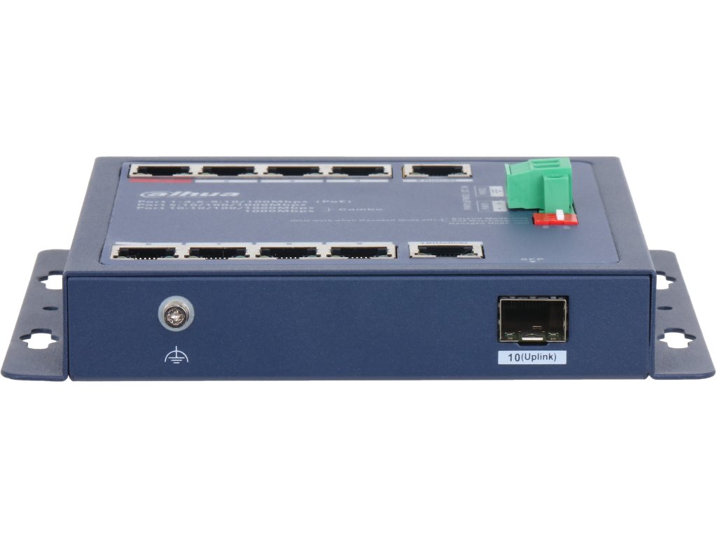 Průmyslový PoE switch, duální napájení, široký teplotní rozsah -30 až 65 °C, Cloud management L2 (DolynkCare), 8 x PoE 10/100 Mbps, 1 x Gb RJ45 a 1 x Gb RJ45/SFP uplink, celkový budget je 90 W, IEEE 802.3af; IEEE 802.3at; Hi-PoE; IEEE 802.3bt. Přepěťové ochrany, kov, police nebo nástěnné, napájecí zdroj součástí balení.