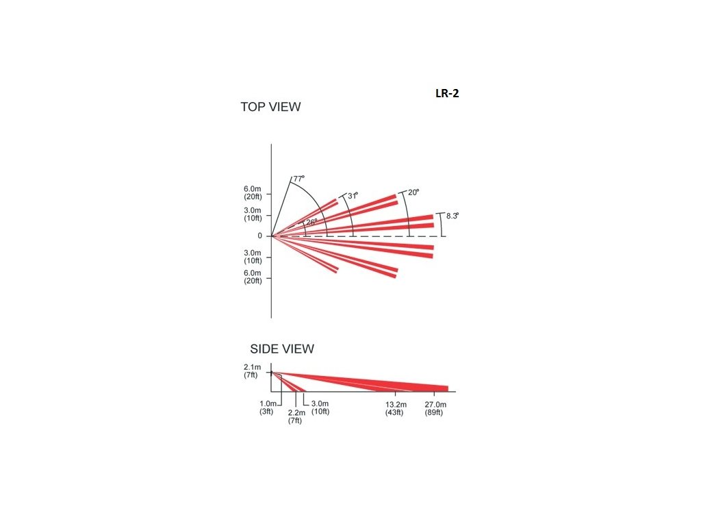 Čočka a dlouhým dosahem 27 m. Detektor zabírá pás asi 12 m. Pro přesné pokrytí prostoru se informujte na obrázku. Čočku lze použít pro detektory Paradox - Pro, DG55, DG65, Vision 525D, DM50, DM60, PMD1P. Dosah je orientační a záleží na použitém detektoru.