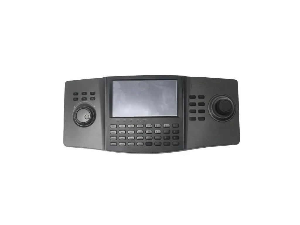 Klávesnice pro IP zařízení. Až pro 256 IP zařízení DVR/NVR/PTZ. 3D joystick. LCD obrazovka 7" s rozlišením 800 x 480. Možnost zobrazení jednoho videostreamu s rozlišením až 2Mpix. Audio vstup a výstup. Rozhraní LAN (10M/100M/1000M) a RS485. USB rozhraní pro zálohování dat a upgrade klávesnice (není určeno pro připojení k DVR/NVR). Napájení 12VDC / 1,25A, 15W max. Rozměry 360mm × 200mm × 108mm.