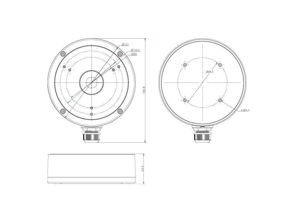 Univerzální patice pro kamery. Rozměry: průměr 157mm x výška 54mm. Bílá barva.
