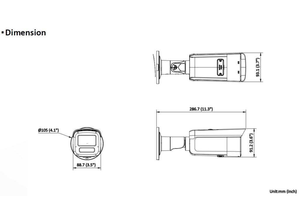 IP bullet kamera, 4Mpx rozlišení(2688 × 1520při 25 sn/s), WDR 120dB, objektiv 2.8 mm, horizontální úhel záběru 104°, ColorVu, AcuSense, duální hybridní přísvit IR 80m / LED 80 m, duální mikrofon, IP67, rozměry: 88.7 mm × 93.1 mm × 286.7 mm, bílé provedení