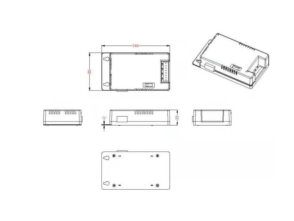 Spínaný zdroj 12VDC/1A/48W, vstup: 150-285VAC - konektor C4, 4x výstup 12VDC/1A(max. 1A na 1 výstup), celkové zatížení 48W/4A, provozní teplota: 0°C - +40°C, provozní vlhkost: 10 - 95% RH, rozměry: 144 x 80 x 33mm.