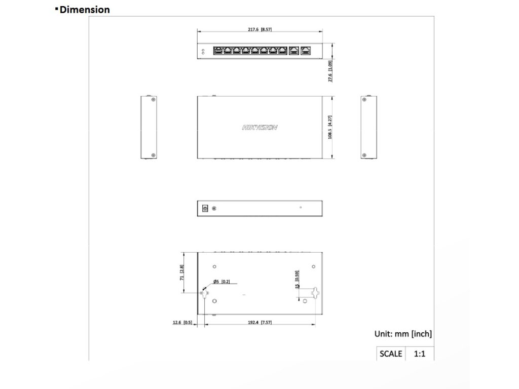 DS-3E1510P-EI/M(B) - Smart managed switch 8x Gbps PoE + 2x Gbps Uplink RJ-45, 80W, Super PoE - dosah až 300m, vizualizace topologie sítě, alarmy typu PUSH, monitoring stavu zařízení v reálném čase, správa šířky pásma, náhled trasování, rozpoznávání zařízení, náhled živého snímku, PoE porty: 8 x Gigabit PoE port + 2 x Gigabit RJ45 Uplink, switching capacity: 20 Gbps, forwarding mode: Store-and-forward, SuperPoE podpora přenosu až 300m, MAC address Table: 8k, PoE standard: IEEE802.3af, IEEE802.3at, PoE Power: max. 80W, Port max power 30W, napájení: 54 VDC, 1,6A, spotřeba energie: 86W, pracovní teplota: 0°C - +40°C, pracovní vlhkost: 5% - 95%, non-condensing, hmotnost 0,54kg, rozměry: 218 x 109 x 28 mm.