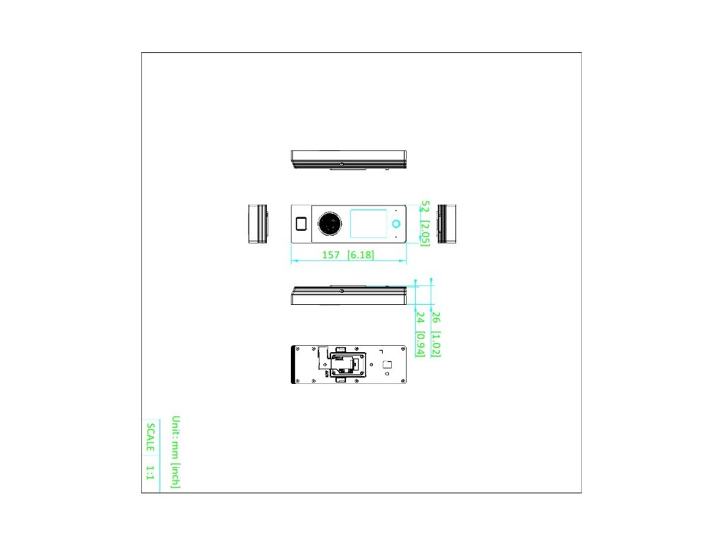 Vstupní terminál s rozpoznáním obličeje,čtečka MF, otisku prstů a PIN kodů, správa funkcí řízení přístupu a interkomu v jednom zařízení, podpora více metod ověřování (karta M1, PIN kód, otisk prstu, face detection ), vzdálené ovládání pomocí mobilní aplikace Hik-Connect, obousměrný zvuk, režim AP, podpora konfiguraci přes webové rozhraní, WDR, kamera PAL standard, komunikace: Bluetooth, 10/100 Mbps síť, Wi-Fi, rozhraní: Poe (IEEE802.3at,), 1x Wiegand, 1x odchodové tlačítko, 1x dveřní kontakt, 1x Tamper, kapacita: až 1000 uživatelů, 3000 karet, 1000 obličejů, 3000 otisků prstu, 150 000 událostí, napájení 12 VDC 1A nebo PoE, pracovní teplota: -30 °C až 65 °C, krytí: IP65, instalace na zeď, hmotnost: 0,22 kg, rozměry: 157 × 52 × 26 mm.