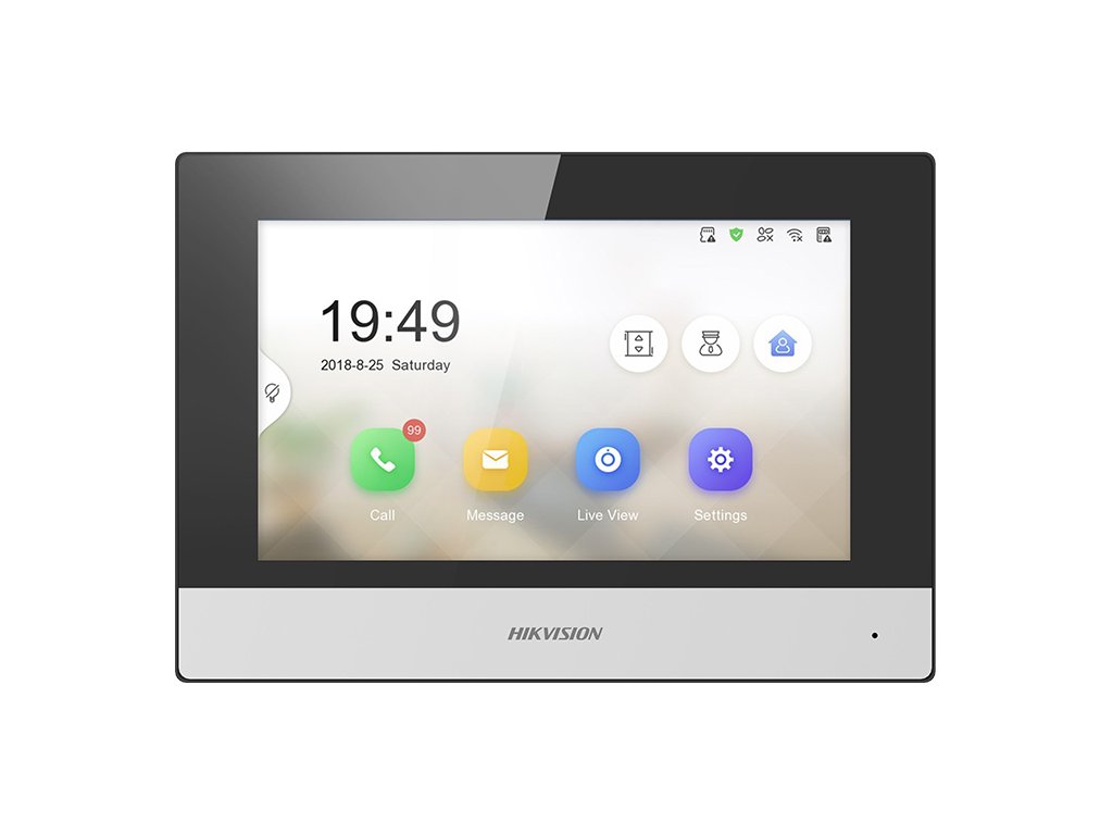 IP videotelefon s dotykovým ovládáním; 7" obrazovka; rozlišení 1024 x 600 dpi; 2-vodičová systém (distributor DS-KAD706) a WiFi; podpora standardního SIP protokolu; slot na SD kartu (max. 32GB); umožňuje sdílení video hovoru s mobilní aplikací HIK-CONNECT pro smartphone/tablet; lze zobrazovat až 16 CCTV kamer z kamerových systémů Hikvision (RTSP stream); česká lokalizace; 2x alarmový výstup(např. pro externí zvonek); 8x alarmový vstupk; distributor DS-KAD706Y; přímá kompatibilta pouze s produkty řady "Y".