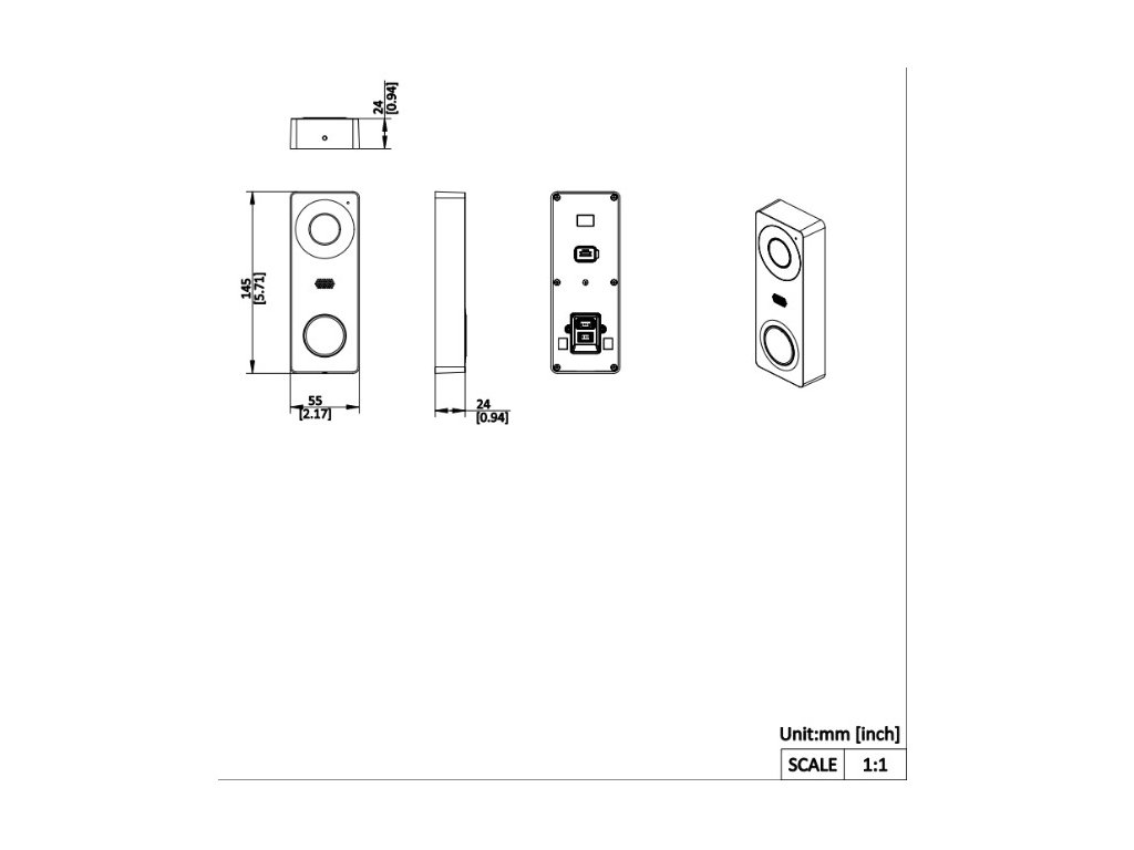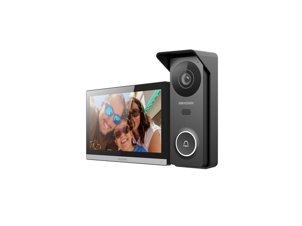 Sada videotelefonu, Hybridní 4-vodičový systém. Videotelefon má plně dotykovou obrazovku 7" s rozlišením 1280 x 720 px. Dveřní staniceve vyrobena z antioxidační hliníkové slitiny s krytím IP65. Kamerový modul (analog) má rozlišení 2 Mpx a úhel záběru horizontální 117° a vertikální 70°. Dveřní stanice má výstupní relé pro spánání dveřního zámku s nastavitelnou dobou spínání, IL přísvit až na 3 metry, sada umožňuje sdílení video hovoru s mobilní aplikací HIK-CONNECT pro smartphone/tablet.. Napájení 12V DC (zdroj součástí dodávky), povrchová instalace, Rozměry monitoru: 175 mm × 113.5 mm × 18.1 mm . Rozměry dveřní jednotky: 55 mm × 145 mm × 24 mm.
