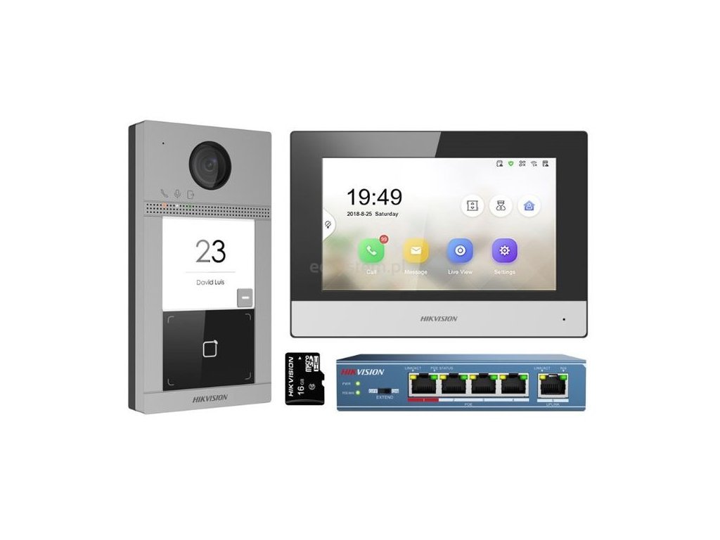 Sada IP systému 2. generace složená z videotelefonu DS-KH6320-WTE1, dveřní stanice DS-KV8113-WME1(C), switche se 4 PoE porty a 16GB SD karty. Videotelefon má obrazovku 7" s rozlišením 1024×600 px, dveřní stanice má hliníkový čelní panel, kamerový modul má rozlišení 2 Mpx, dva výstupní kontakty (pro napájení zámku nutné použít externí zdroj). Sada umožňuje sdílení video hovoru s mobilní aplikací HIK-CONNECT pro smartphone/tablet., rozměry monitoru 200 × 140 × 15.1 mm, rozměry dveřní jednotky 174 × 91 × 29 mm.