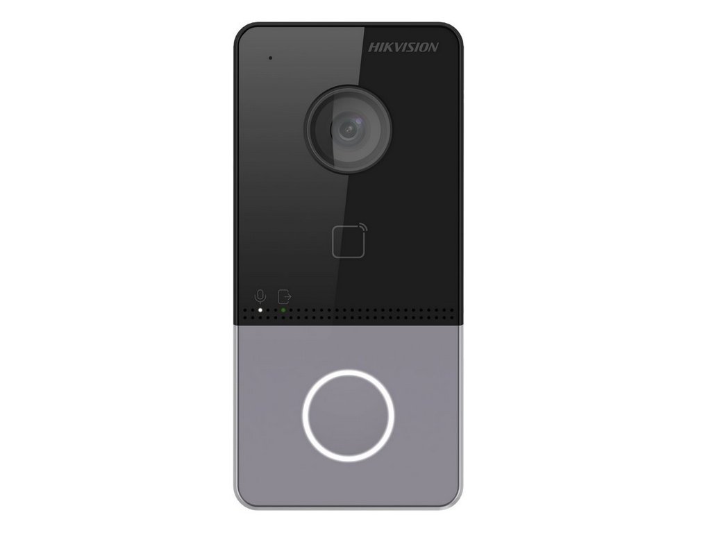 Dveřní IP stanice s kamerou a 1-tlačítkem, IP systém videotelefonů Hikvision 2. generace, plastové provedení, povrchová instalace, umožňuje přímé volání na mobilní telefon prostřednictvím cloudové služby od Hikvisionu a mobilní aplikace Hik-Connect, kamera má funkci WDR a rozlišení 2 Mpx (1920x1080), horizontální úhel záběru 131°, vertikální úhel záběru 78°, rozhraní LAN 10/100 Mbps a WiFi, kapacita karet/čipů max 2000, 1x RS485, 1x odchodové tlačítko, 4x alarm IN, RFID čtečka čipů/karet Mifare (13,56MHz), 1x NO/NC kontakt pro zámek(pro napájení zámku nutné použít externí napájecí zdroj), napájení 12V DC nebo standardní PoE IEEE802.3af, IP65, provozní teplota -40°C až +55°C, rozměry: 138 x 65 x 27 mm, hmotnost 265g.