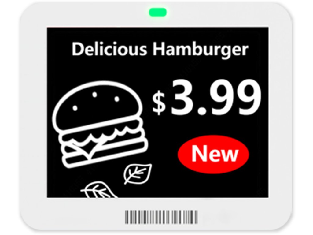 Elektronický digitální papír ESL velikost 4.2" pro maloobchodní regálové štítky, kombinace barev černá, bílá, červená, NFC. Komunikace s obslužným AP pomocí správy na Cloud účtu a SW třetích stran přes API rozhraní. Napájení 2x knoflíkovou baterií CR2450 3V, 600 mAh, životnost 5 let při přepisu 4x denně, rozměr 103.6 mm × 87 mm × 10.3 mm