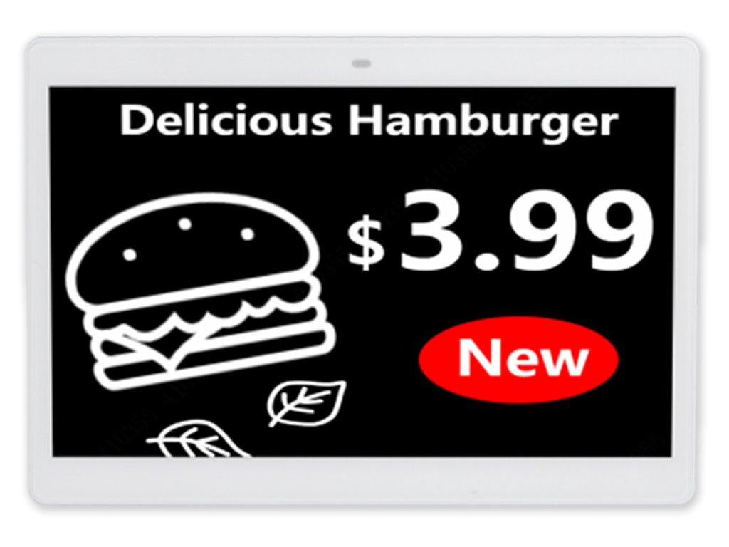 Elektronický digitální papír ESL velikost 4.2" pro maloobchodní regálové štítky, kombinace barev černá, bílá, červená, NFC. Komunikace s obslužným AP pomocí správy na Cloud účtu a SW třetích stran přes API rozhraní. Napájení 4x baterií CR2450 3V, 600 mAh, životnost 5 let při přepisu 4x denně, rozměr 176.8 mm × 124.3 mm × 13 mm