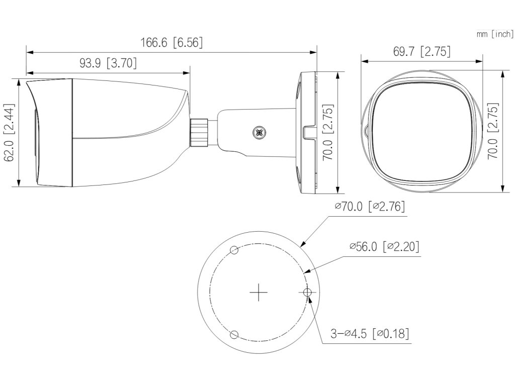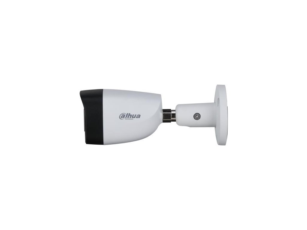 Venkovní kompaktní HDCVI kamera, fixní objektiv 2,8 mm (úhel 106°), integrovaný mikrofon, mechanický IR filtr a Smart přísvit 20 m, bílé LED 20m. 8 Mpix rozlišení při 25 snímků/s, kovový kryt, kabel prochází středem držáku kamery.