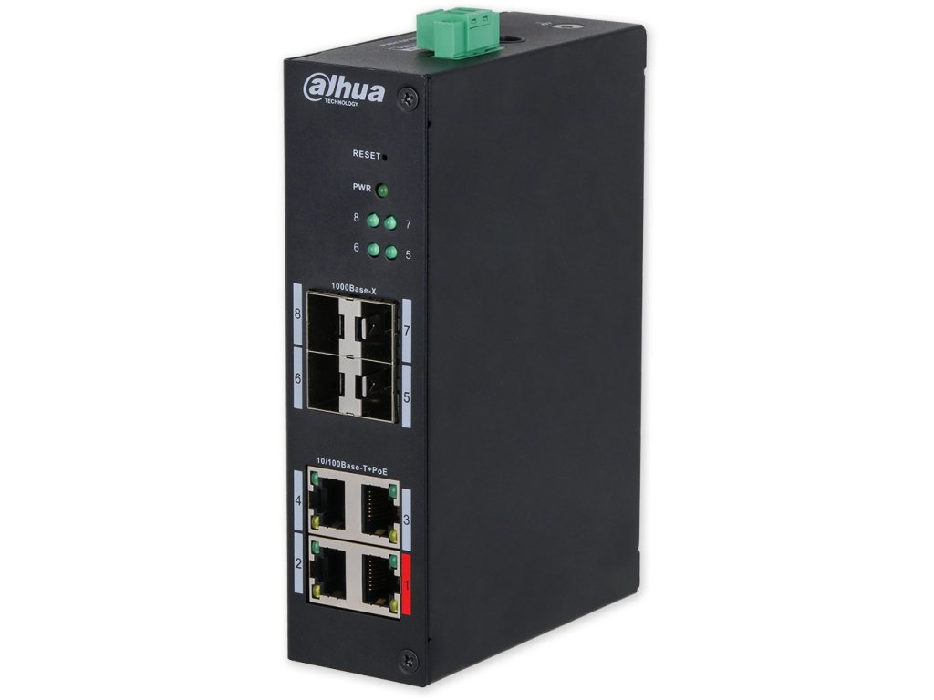 | Popis portů: | 4 x PoE 10/100 Mbps, 4 x 1000 Mbps SFP Uplink |