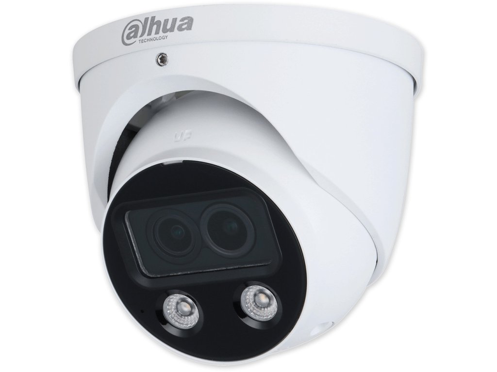 Venkovní dome ball IP kamera řady WizMind dual snímač 4 Mpix s 25 sn/s, 1/1.8" viditelné a infračerveném spektru světla k získání maximální kvality a ostrosti obrazu. Objektiv 2,8 mm (97°), smart IR LED 50 m, mikrofon a repro . AI umělá inteligence: perimetr, rozpoznání osob/vozidla, klasifikace, počítání osob, tváře, heat mapy, opuštěný/ztracený objekt . Poplachový vstup, výstup, napájení ePoE.