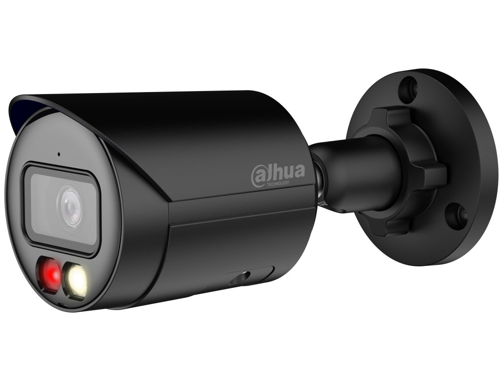 Venkovní černá IP kamera řady WizSense s technologií dual přísvit, mikrofon, AI a vysokou citlivostí snímače. V noci IR přísvit, který zobrazuje černobílý obraz, při detekci osoby/vozidla aktivuje viditelné bílé LED světlo a změní režim obrazu na barevný pro narušení perimetru.