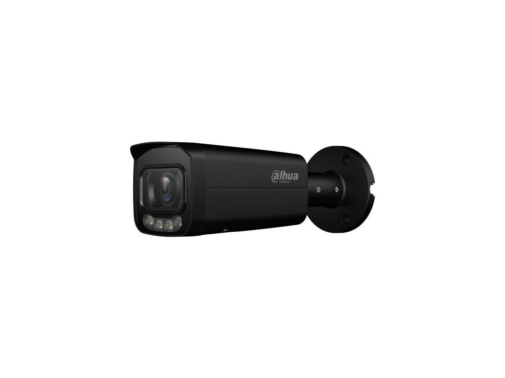 Venkovní černá kamera WizSense snímač Starlight. Chytrá detekce pohybu SMD 4.0, perimetr s kategorizací objektů člověk/vozidlo. AI SSA pro dynamické přizpůsobení obrazu, QuickPick, chytré hledání. 8 Mpix rozlišení, smart IR přísvit 60 m, objektiv 2,7-12 mm (úhel 113°-47°). Slot pro micro SD kartu, audio, mikrofon, alarm I/O. Napájení PoE nebo 12 VDC.
