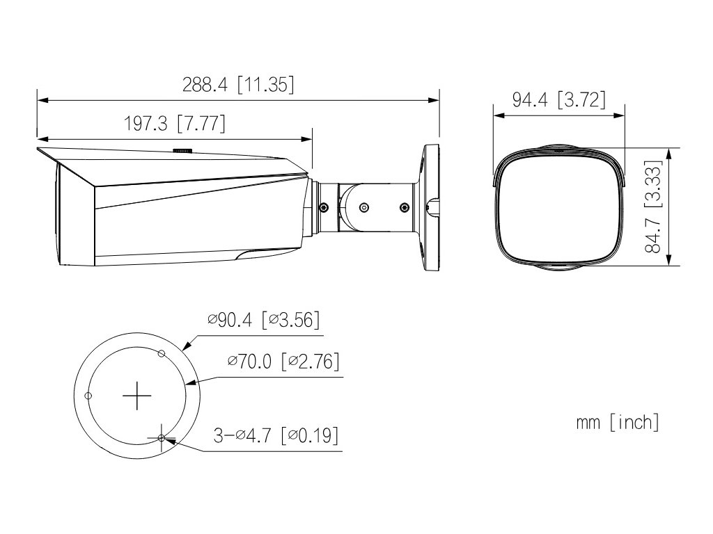 černá Bullet IP kamera řady WizSense 3 Series, Smart Dual přísvit, IVS ochrana perimetru, SMD detekce člověk/vozidlo, inteligentní vyhledávání. AcuPick auto hledání pohybujících se objektů. AI SSA dynamické přizpůsobení obrazu, integrovaný duální mikrofon a repro (obousměrné audio komunikace), alarm I/O, slot pro micro SD. Napájení PoE nebo 12 VDC.