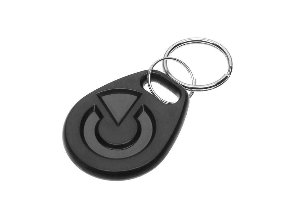Přístupový čip k systému JABLOTRON 100+ ve tvaru přívěsku na klíče v černém provedení.