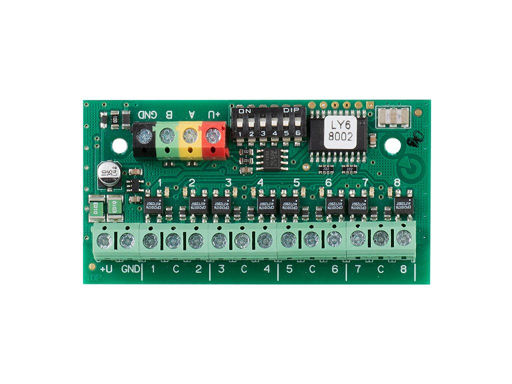 Výrobek je komponentem systému JABLOTRON 100+. Poskytuje celkem osm galvanicky oddělených výstupů. Může sloužit například k ovládání optických indikačních prvků, rádiových komunikátorů nebo silových relé.