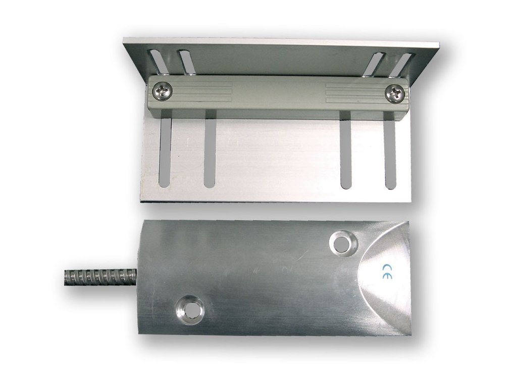 Masivní povrchový magnetický kontakt, určený pro povrchovou montáž na velká vrata, drátové vývody v pancéřové chráničce, možnost přejezdu autem.
