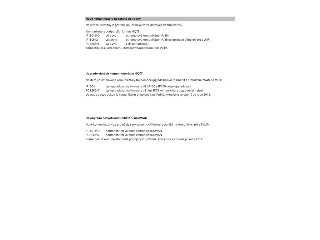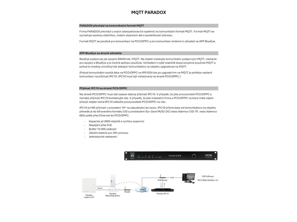 Komunikační formáty: | MQTT, IP přijímač IPC10 |