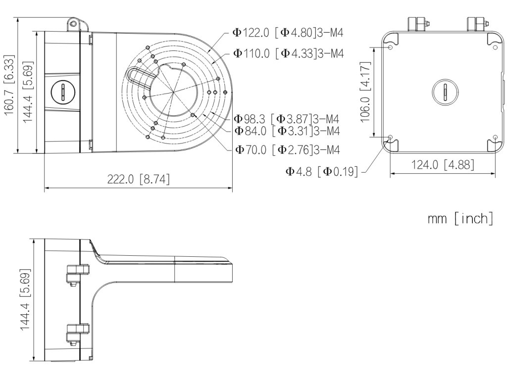 Nástěnný černý držák pro montáž dome kamer Dahua na zeď. Pro průměr kamery do 144 mm. Nostnost 3 kg.