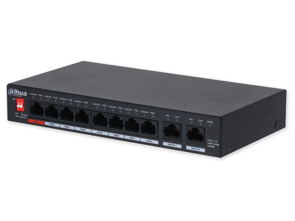 | Popis portů: | 8 x PoE 10/100/1000 Mbps, 2 x Uplink 10/100/1000 Mbps |