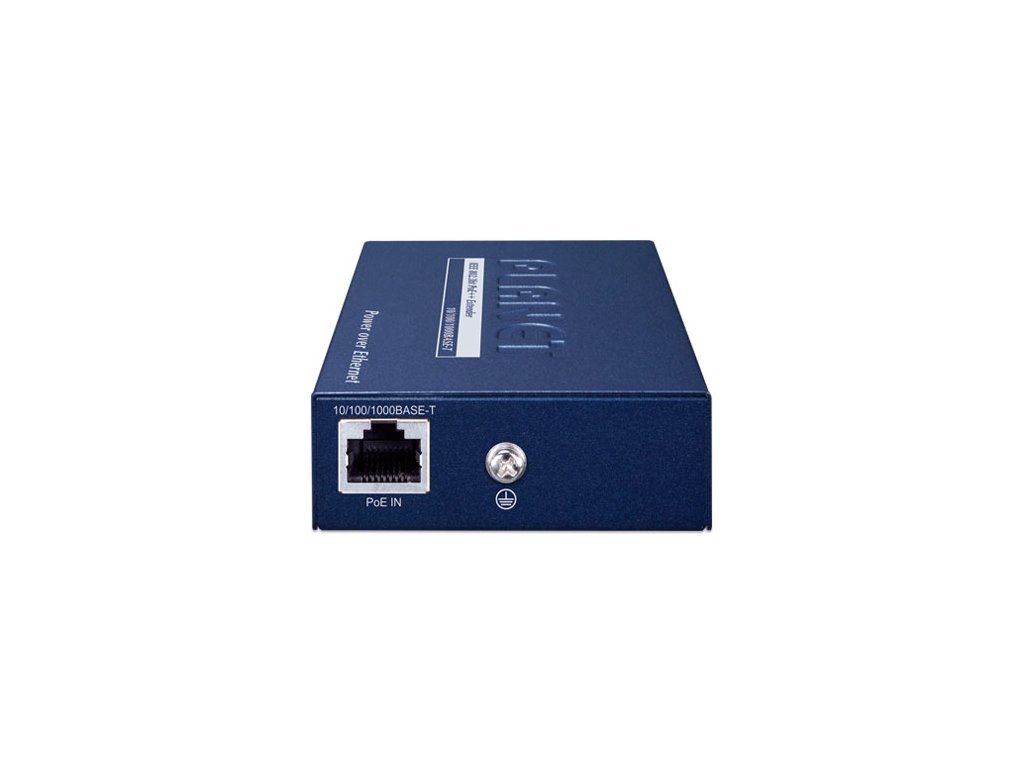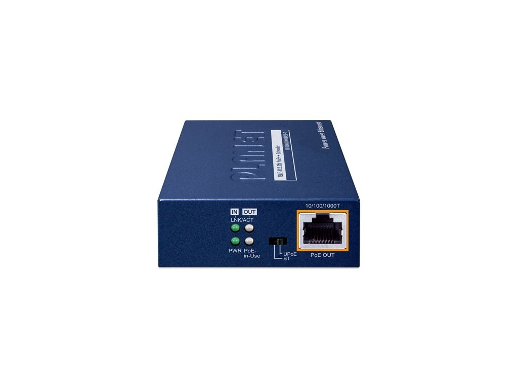 PoE extender, který prodlužuje ethernetový přenos dat, tak i napájení PoE dle IEEE 802.3bt/802.3at/802.3af nad standardní limit 100 m, Cat.5e na 300 m, Cat.6 na 400 m.