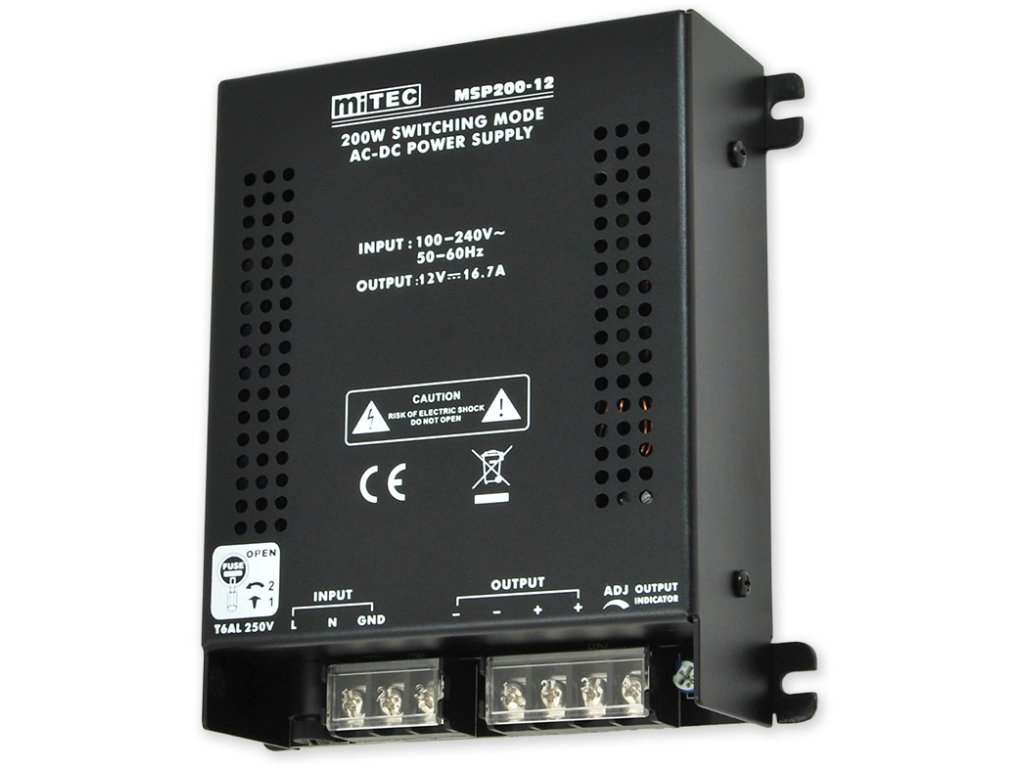 Přídavný spínaný zdroj s výstupním napětím 12 V/16,7 A, napájení 230 V. Zdroj je vybaven ventilátorem aktivního chlazení.