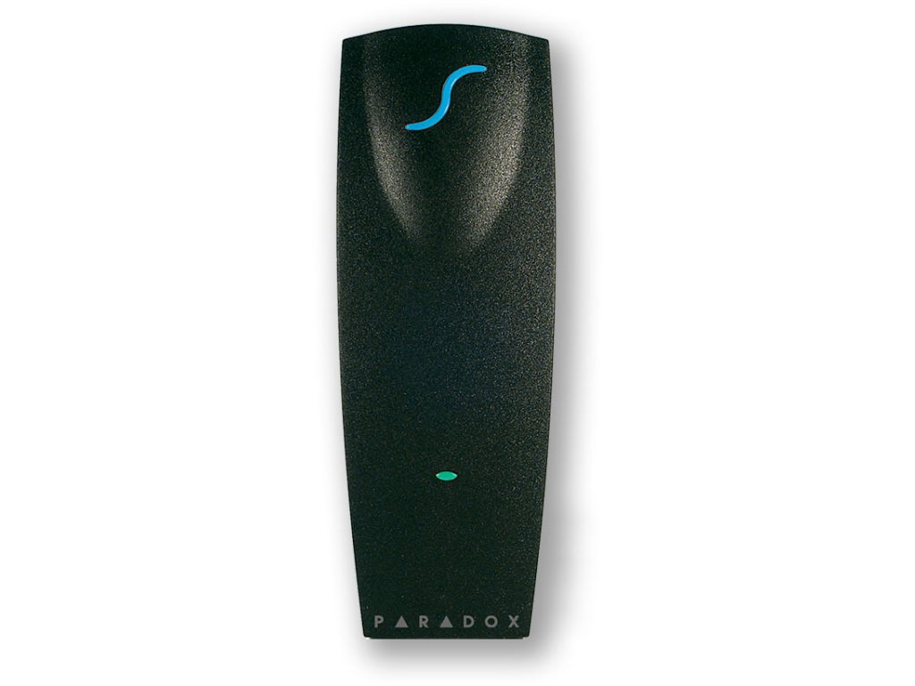 Bezdotyková čtečka pro vnitřní i venkovní použití s výstupním formátem PARADOX RS-485. Součástí čtečky je přívodní kabel. Připojení je pomocí 4 vodičů do vzdálenosti 300 metrů twistovaným kabelem.
