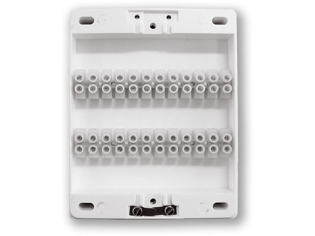 Rozvodná krabice s 24 šroubovacími svorkami a mechanickým NC kontaktem, tamper.
