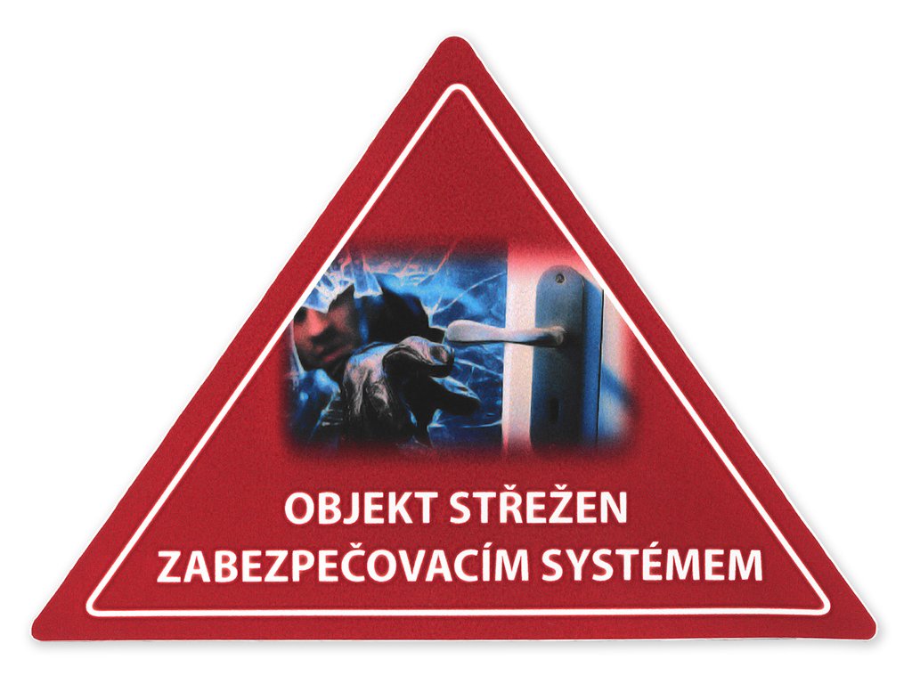 Inverzní výstražná červená samolepka ve tvaru trojúhelníku. Nálepka je v barevném provedení na plastové podložce s vysokou UV odolností barev pro lepení na vniřní stranu dveří nebo okna, rozměr je 146 x 104 mm.