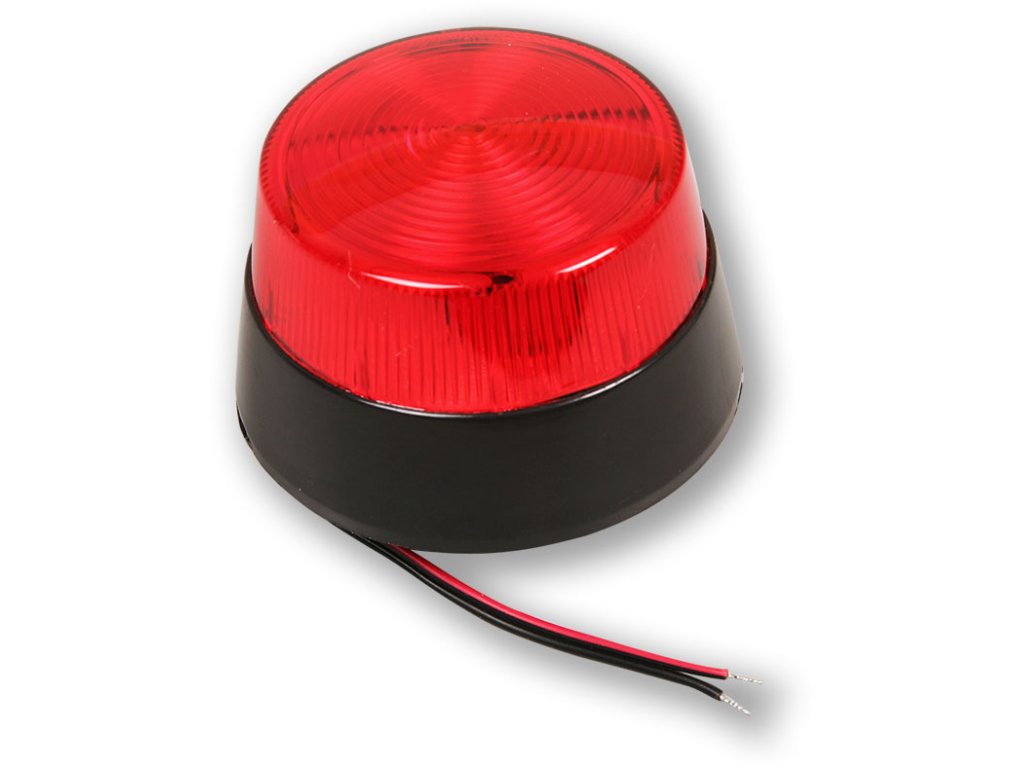 Blikač používající výbojku s vysokou intenzitou svitu, stroboskopický interval asi 0,5 s., v červeném barevném provedení.