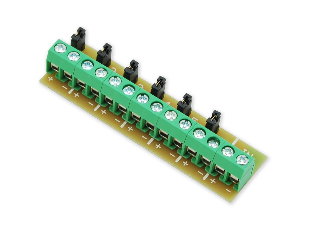 Přídavná svorkovnice pro mechanické rozšíření počtu napájecích svorek AUX s možností vyřazení jednotlivých okruhů pomocí propojek.