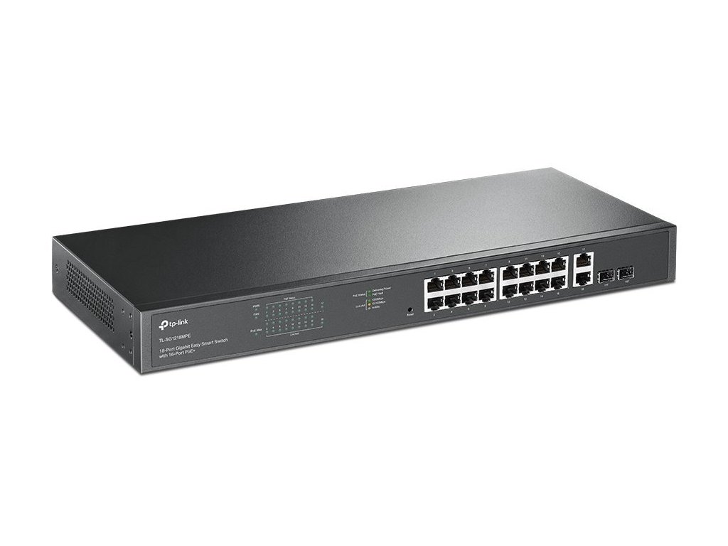 Switch nabízející šestnáct GbE RJ-45 portů s podporou PoE+ (802.3af/at) a celkovým napájecím výkonem až 250 W. Dále nabízí dva combo Gigabit RJ-45/SFP porty pro uplink. Snadné použití přes web management nebo pomocí Easy Smart Configuration Utility. Přepínací kapacita dosahuje až 36 Gbps a rychlost směrování až 26,78 Mpps.
