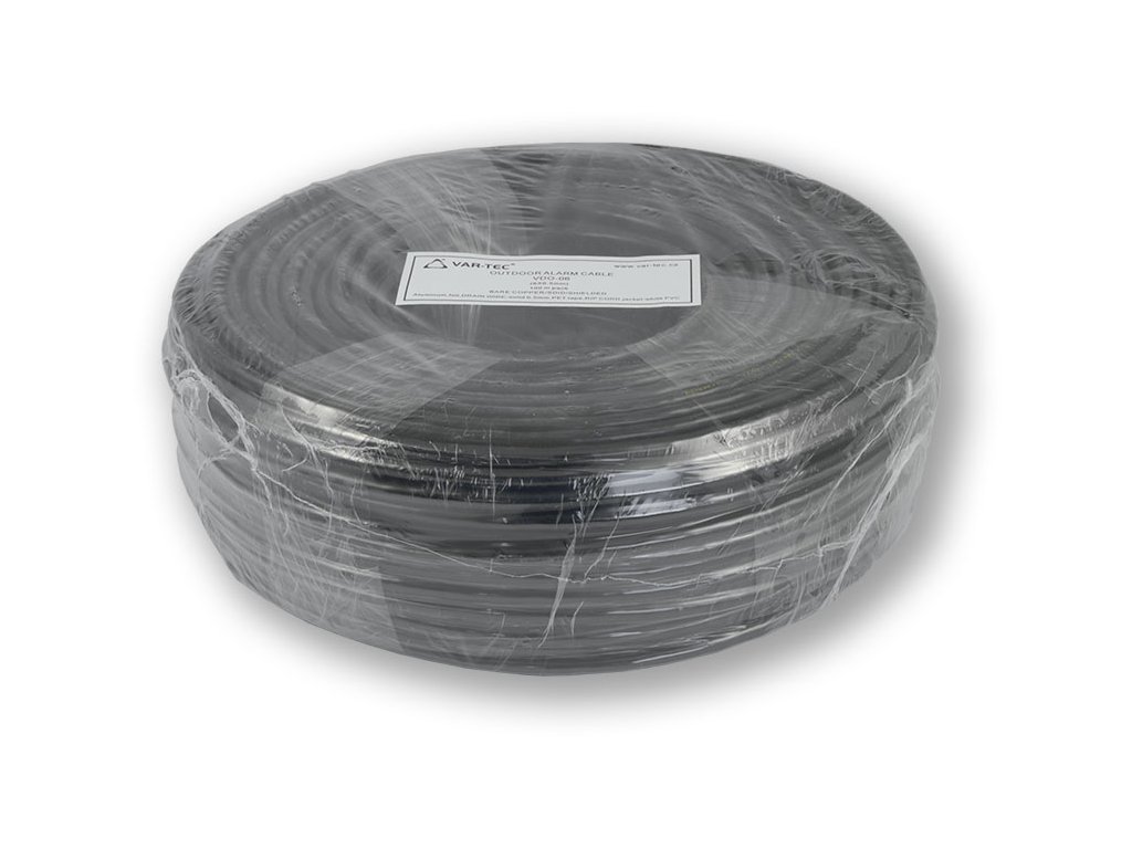 Stíněný kabel typu "drát", 6 žil pro venkovní použití, dvojitý plášť PVC + PE, průměr drátu 0,5 mm, pro slaboproudé rozvody EZS v balení po 100 m délky, značení délky na plášti kabelu.